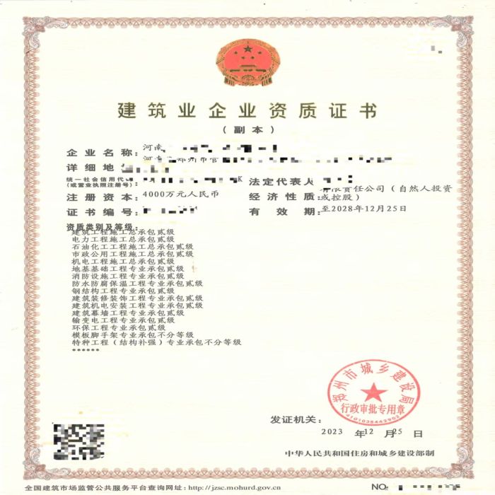 郑州2级总承包房建、市政、机电、电力、石油资质股权让